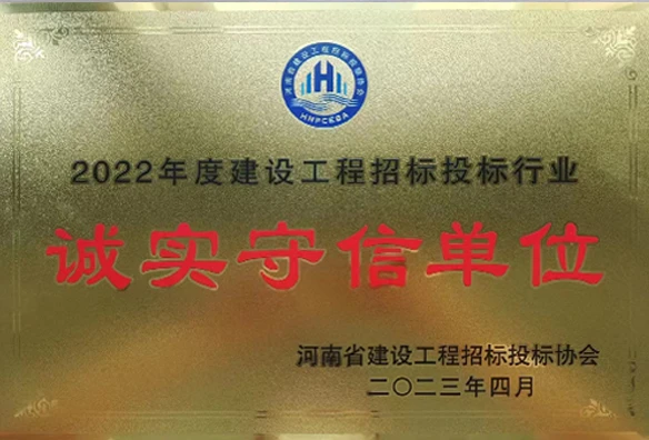 中伟诚工程管理有限公司被评为2022年度建设工程招标投标行业诚实守信单位