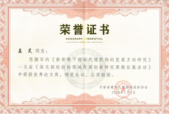 姜昊:2023年度诚信自律建设先进个人