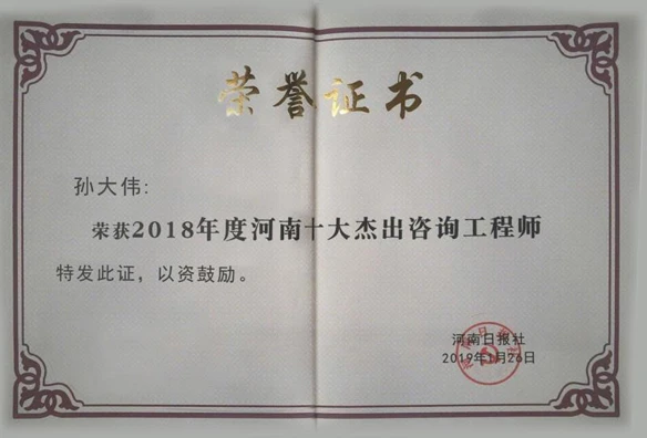 孙大伟:2015年度贯彻实施建筑施工安全标准先进个人