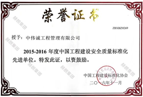2015-2016年度中国工程建设安全质量标准化先进单位。