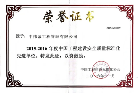 2015-2016年度中国工程建设安全质量标准化先进单位